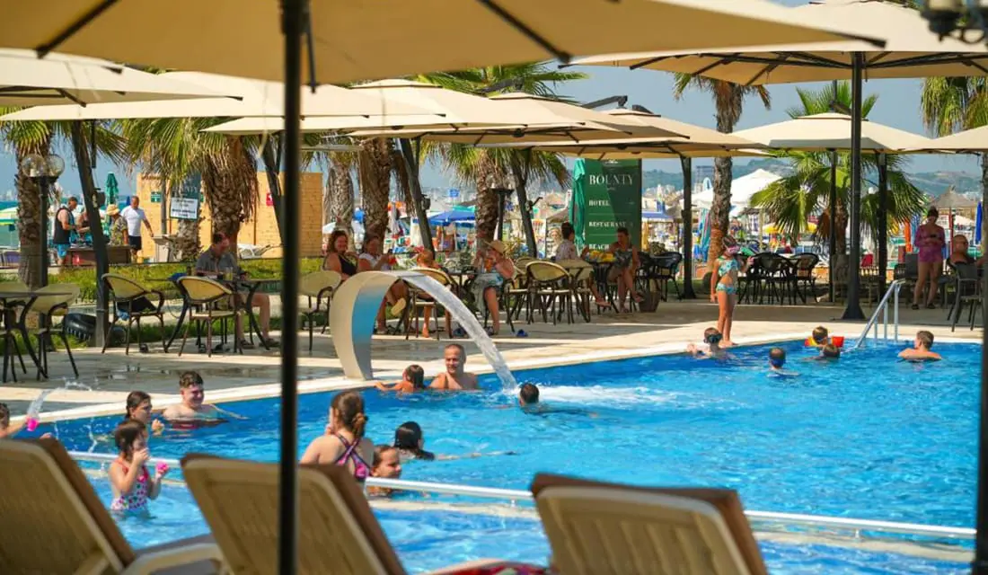 Hotel Bounty je novi hotel koji se nalazi u okrugu Qerret ( 50 metara od hotela Supreme ), te uz samu plažu. Posjeduje otvoreni bazen i privatnu plažu na kojima su Vam kao gostima obezbijeđene ležaljke i suncobrani. Hotel posluje na bazi polupansiona ( doručak + večera ). Hotelska zgrada ( sobe i recepcija ) je fizički odvojena od objekta u kojem se nalazi hotelski restoran ( 20 metara ), a ispred restorana se nalazi bazen, šetnica i plaža.